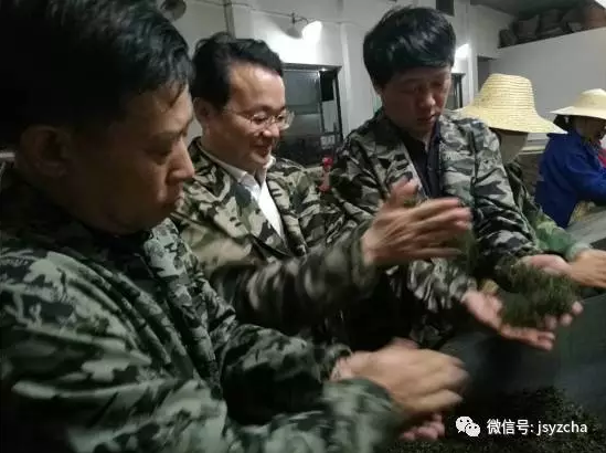 4月6日晚10:00,市城投集團黨委書記、董事長游志堅來到君山島君山茶廠,看望和慰問深夜仍堅守崗位正在從事茶葉生產的君山茶廠員工。來到揉捻車間,茶廠負責人向游志堅一行詳細介紹了茶葉生產、采摘、加工的全過程。當聽到作為中國十大名茶之一的君山銀針獨特的燜黃工藝時,游志堅饒有興趣地向制茶師傅了解加工的環節和制作的細節,并對這一湖南省非物質文化遺產大加贊賞。在烘焙車間,游志堅興致勃勃地與技術人員一起在手工炒鍋中對毛尖茶葉進行翻炒、搓揉,直至顯露白毫。
